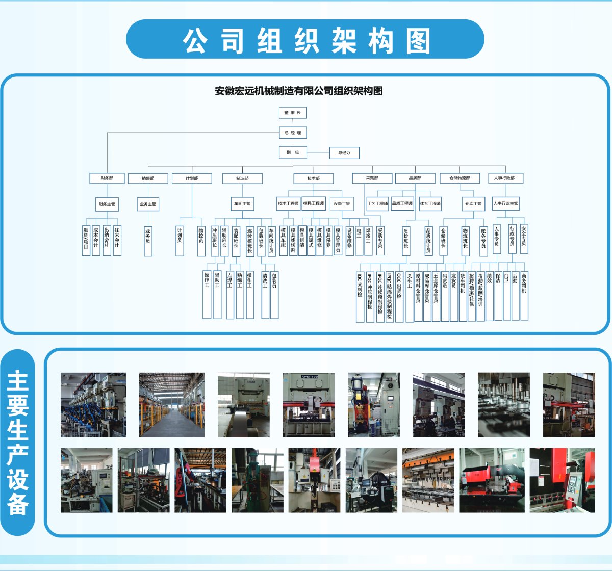 安徽宏遠機械制造有限公司(原合肥徐恒工貿有限公司),創建于2003年12月,現座落于肥西縣桃花鎮長安工業聚集區楊井路15號。目前公司占地面積30余畝,生產廠房兩棟,總建筑面積12000平米,綜合辦公樓一棟,建筑面積3000平米,公司2019年年產值2.45億元。我公司是以鈑金沖壓、加工為主的生產企業,擁有完整的精加工檢驗體系。通過近年的發展,公司已由原先單一的沖壓加工生產模式,轉化為模塊化、多業務鏈的汽車、家電零部件的制造企業,目前公司產品品種已涉及家電,汽車零配件近百種。